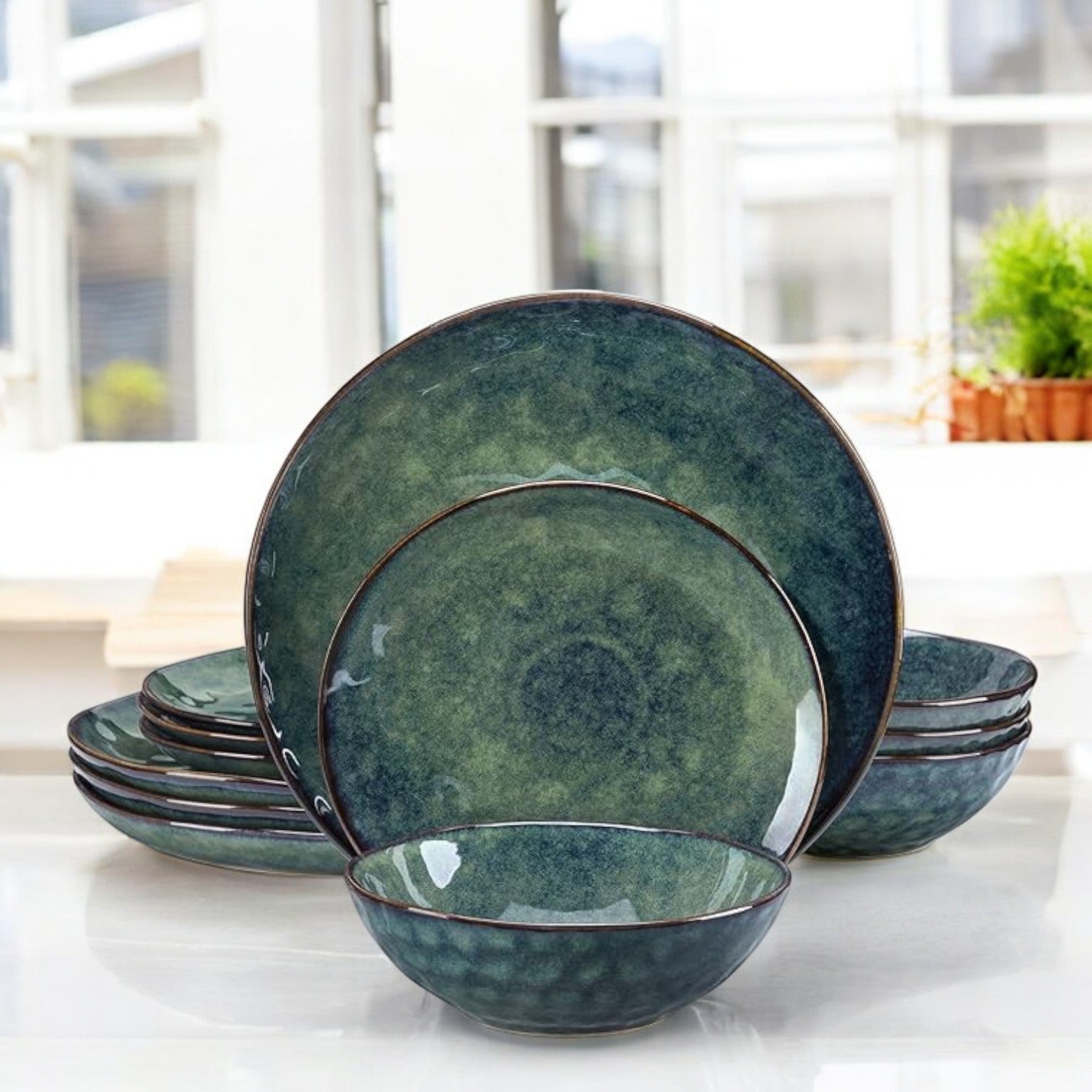 • Ideal for modern and minimalist settings, the Waterdrop Fog Green Stoneware Crockery Set effortlessly blends style and practicality. Whether you’re hosting guests or enjoying a quiet dinner at home, this elegant set adds a touch of tranquility and sophistication to your dining experience.