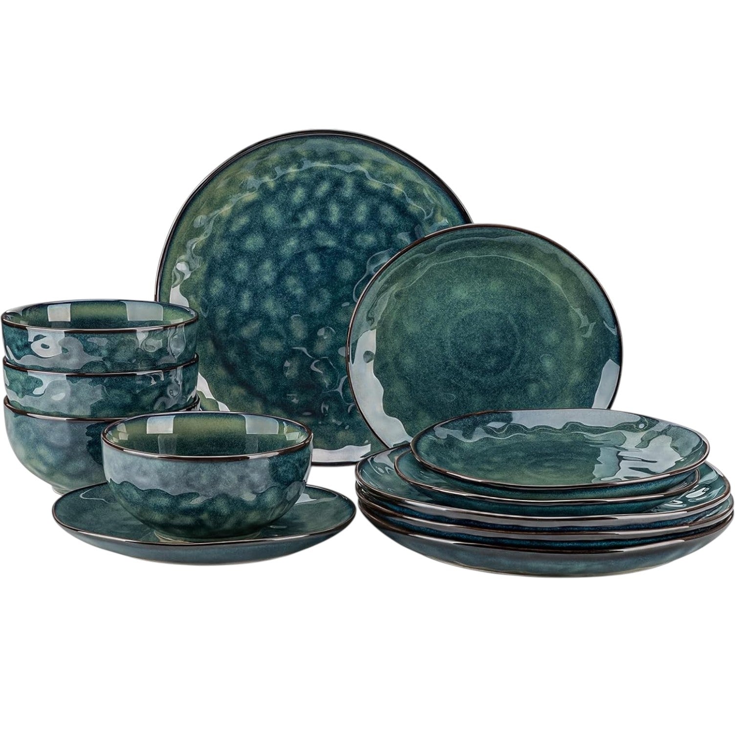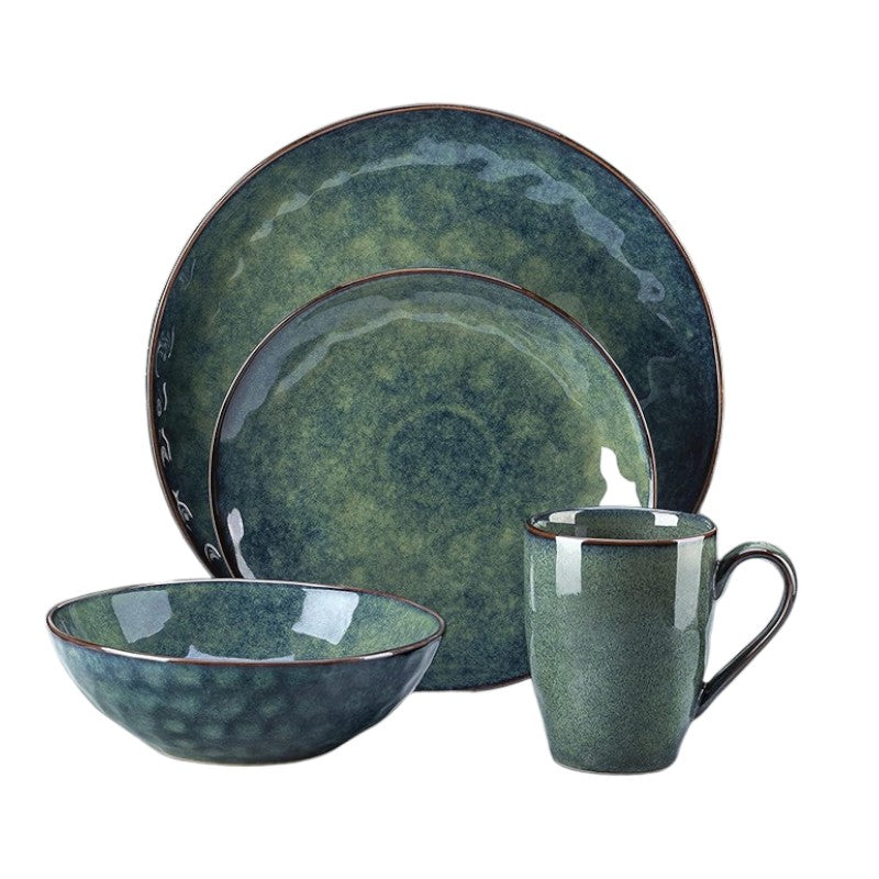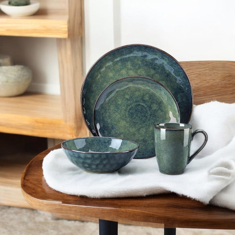 Waterdrop Fog Green Stoneware Crockery Set - 16-Piece Dinnerware Set - Elegant and Durable for Dining, Serving, and Entertaining with a Soft, Contemporary Look