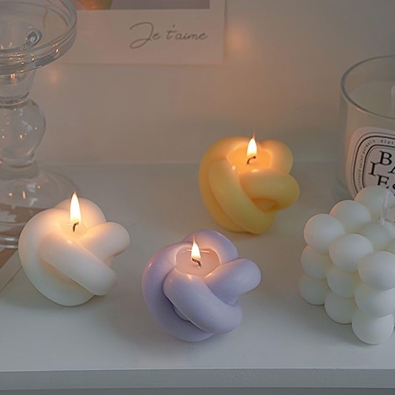 - Illuminate your space with the White Knot Soy Candle, a stunning handmade candle that brings both elegance and tranquility to your home. Featuring a unique knot-shaped design, this candle stands out with its crisp, pure white color, evoking a sense of simplicity and sophistication. Crafted from 100% natural soy wax, it offers a clean, even burn that gently fills your room with a calming, soothing fragrance. Whether you place it in your living room, bedroom, or bathroom, the White Knot Soy Candle is the perfect centerpiece for creating a peaceful and serene atmosphere, ideal for relaxation or enhancing your home décor.
