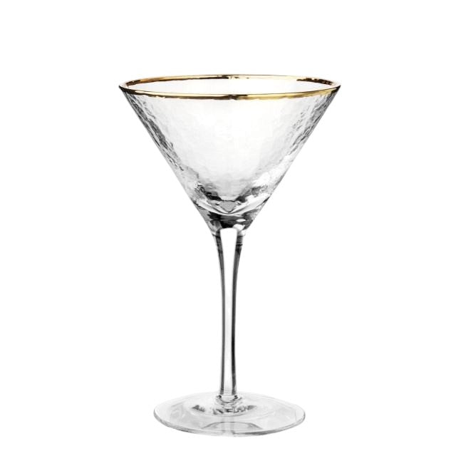 "240ml Hammered Martini Glass Clear with Gold Rim – Shake Up Your Cocktails!"
