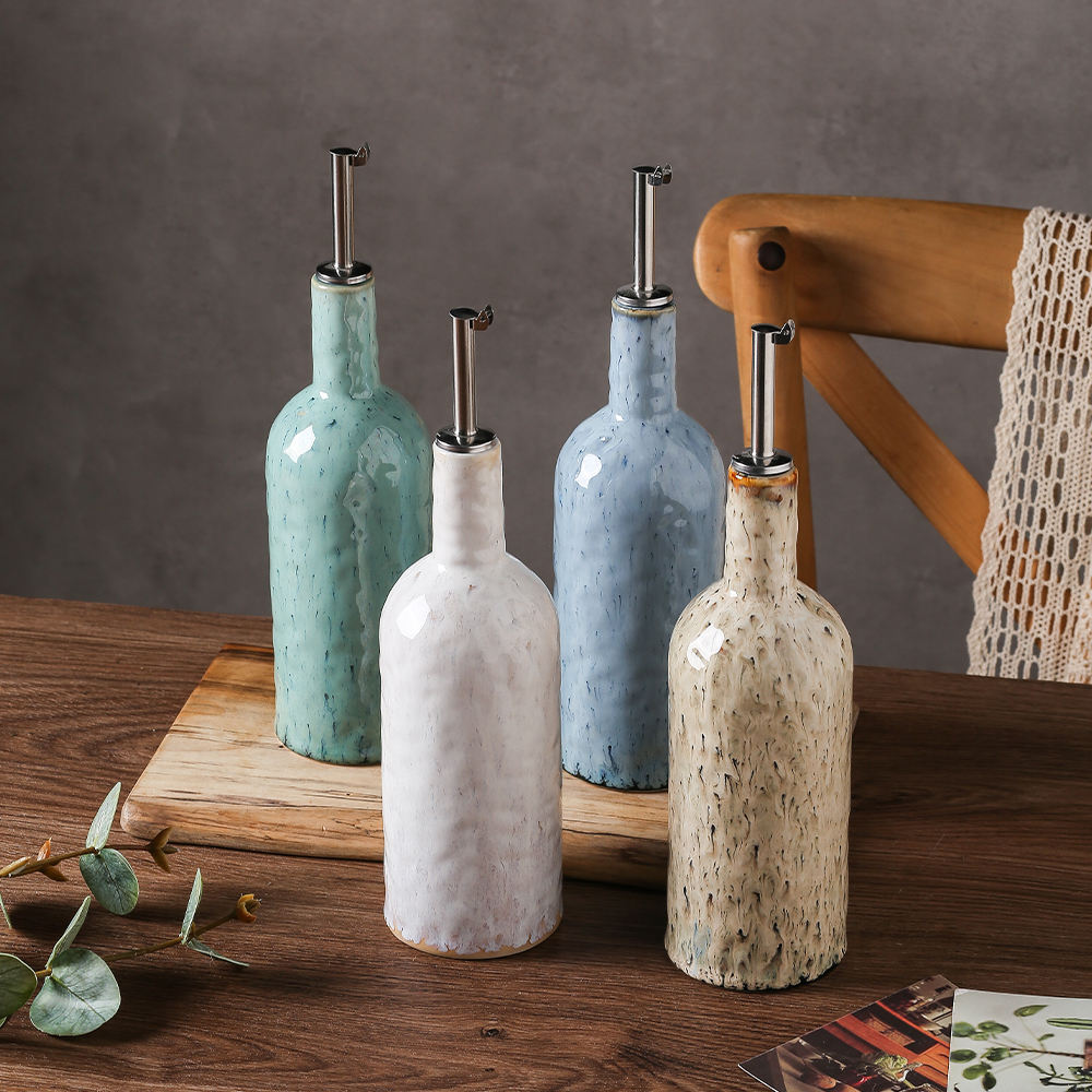 Green Home Kitchen Leak Proof Liquid Condiment Vinegar bottle 400ml Ceramic Soy Sauce Bottle Ceramic With Stainless Steel Spout