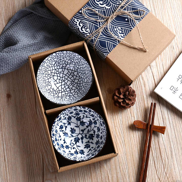 - Our gift sets include a set of matching chopsticks, beautifully crafted to complement the bowls. The chopsticks are made from durable and lightweight materials, making them comfortable to hold and easy to use. Whether you are enjoying a cozy breakfast at home or hosting a dinner party, these gift sets are sure to impress your guests with their stunning aesthetics and functionality. Treat yourself or surprise your loved ones with these Japanese Colored Hand Painted White and Blue Porcelain Ceramic Food Breakfast Rice Soup Noodle Ramen Bowl Chopsticks Gift Sets, and elevate your dining experience to a whole new level.