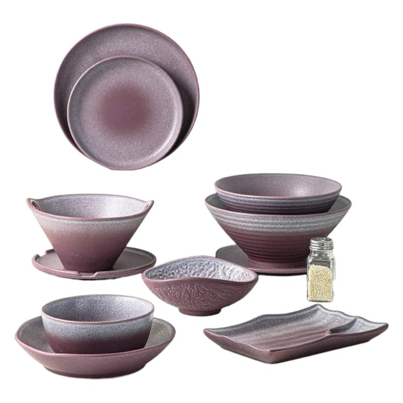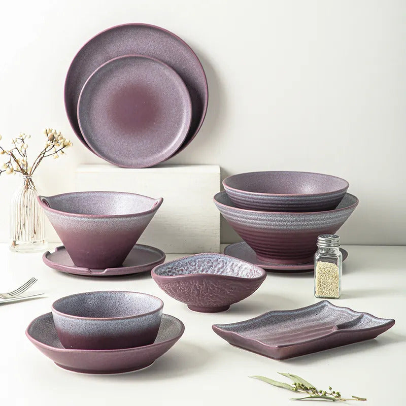Each plate in the set is meticulously crafted with a luxurious crackle glaze finish, creating a statement piece that adds elegance to any table. The deep purple hue and unique texture make these plates stand out, ensuring they are perfect for any dining occasion.