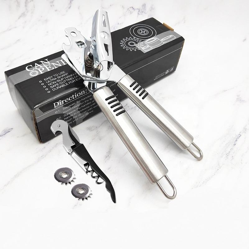 Benefits: "With our Stainless Steel Tin Opener, you can tackle any can smoothly and safely. Its sharp, durable blades and comfortable grip make it an essential tool in any kitchen, perfect for anyone who values quality and convenience. Say goodbye to struggling with stubborn cans and upgrade your kitchen with this heavy-duty tool!"