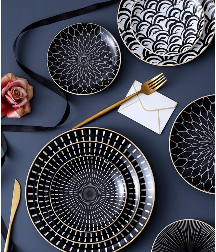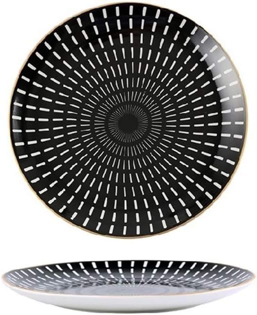 - Enhance your dining experience with these stylish 8-inch black plates featuring a striking radial white dot design. Crafted from high-quality ceramic, these plates offer durability and elegance, making them perfect for both casual meals and formal gatherings. The sleek black background with a modern dot pattern creates a visually appealing contrast, adding sophistication to your table setting.