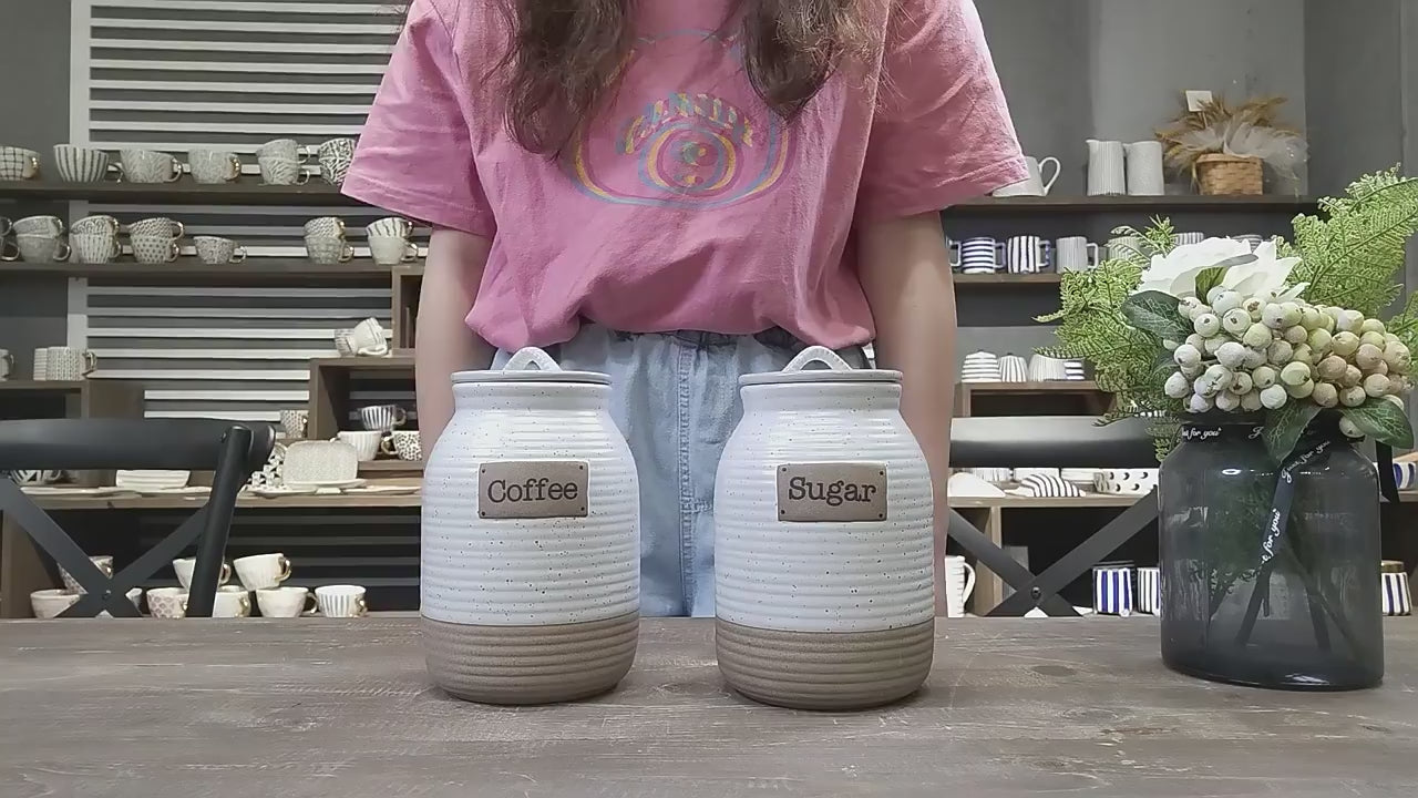 - Introducing the Earthen Elegance Clay Ceramic Storage Jars, the perfect addition to your kitchen storage needs. This beautifully designed jar features a woman effortlessly opening a jar filled with sugar, showcasing the ease and convenience of this product. Crafted from high-quality clay ceramic, these storage jars are not only functional but also add a touch of elegance to your kitchen decor.