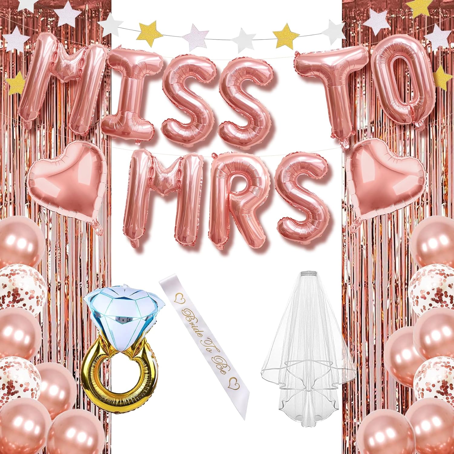 - Set Includes: "MISS TO MRS" letter foil balloons in a stylish metallic finish