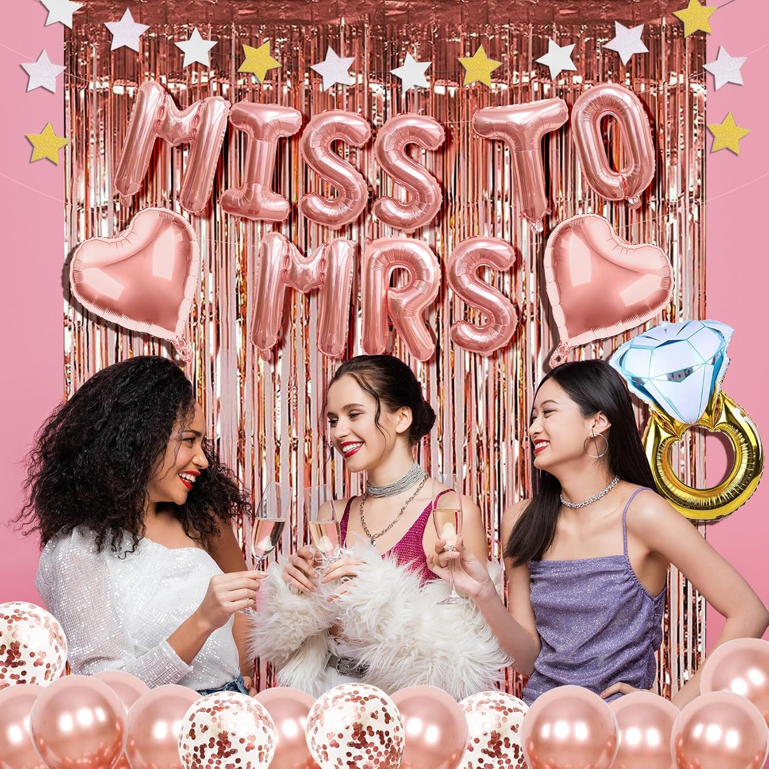 - Perfect for bridal showers, bachelorette parties, and engagement celebrations, these MISS TO MRS balloons serve as an eye-catching centerpiece for any event. Easy to inflate with a balloon pump or straw, they are reusable and can be stored for future celebrations. Their timeless design complements a variety of party themes, making them a must-have decoration for any bride-to-be's special day.