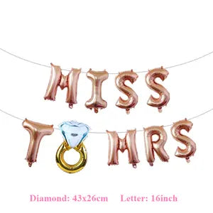 - Celebrate the bride-to-be in style with these stunning MISS TO MRS foil balloons, the perfect addition to any bachelorette party or bridal shower. Designed in a chic and elegant style, these balloons create a glamorous party atmosphere, making them ideal for decorating walls, tables, or party backdrops. Whether hosting an intimate gathering or a grand celebration, these balloons add a sophisticated touch to your event.