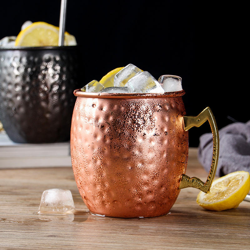 Elevate your cocktail experience with our Moscow Mule Barrel Copper-Plated Rose Gold Hammered Cups. Crafted with a striking hammered texture and plated in luxurious rose gold, these generous 500ml cups are perfect for enjoying classic Moscow Mules, refreshing cocktails, or any beverage of your choice. The unique hammered finish not only adds visual interest but also enhances the tactile experience, making each sip feel special.