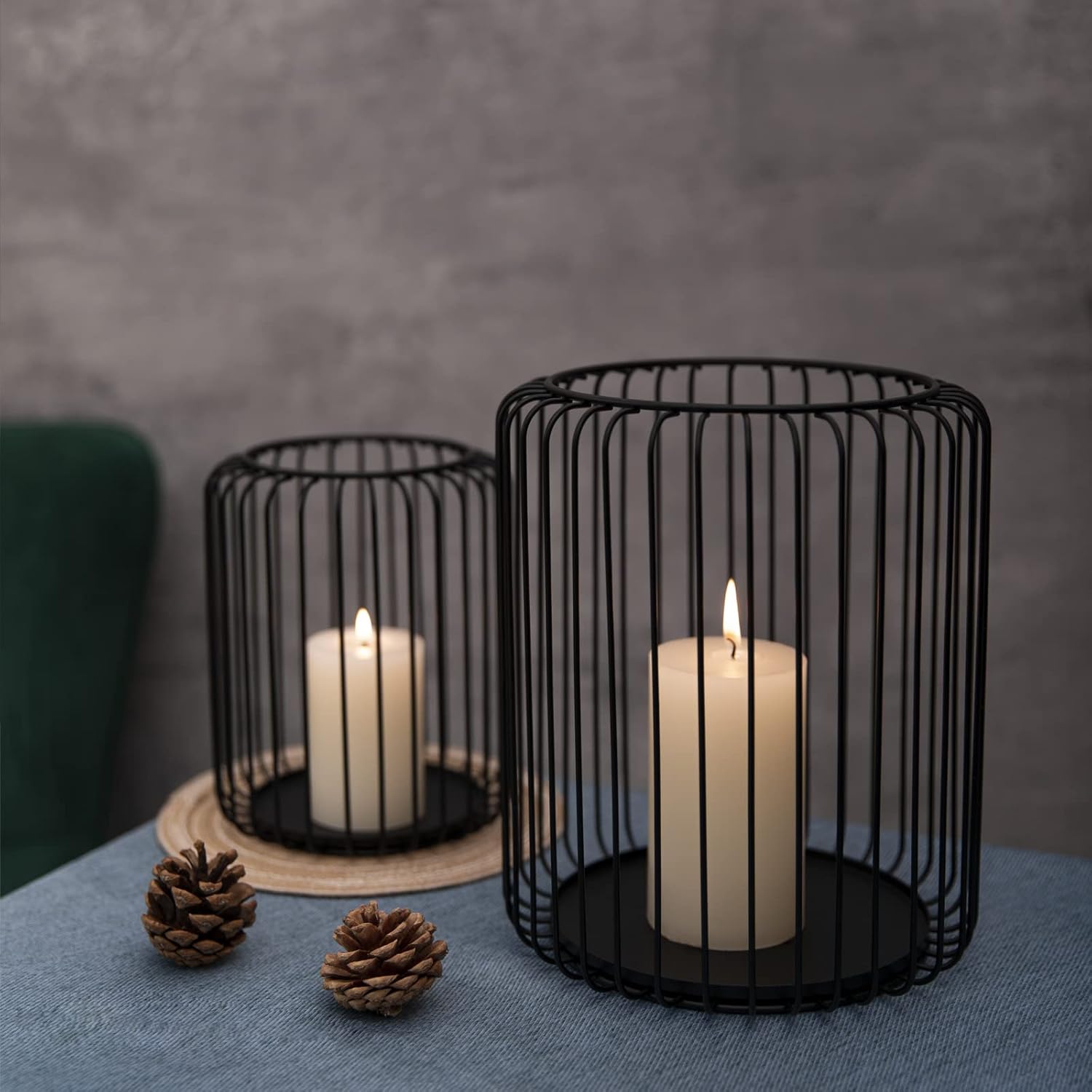 Small Retro Metal Iron Wire Lantern Candle Holder - Vintage-Inspired Candle Holder for Creating Cozy, Atmospheric Lighting - Perfect for Home Decor, Tablescapes, or Outdoor Settings