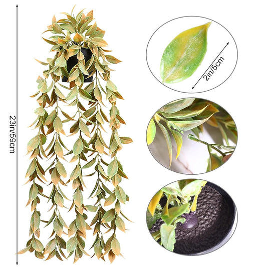 Artificial Pomelo Leaves Hanging Potted Plant - Realistic Faux Plant with Lush Green Leaves in Decorative Pot - Perfect for Home Decor, Offices, and Indoor Spaces - Low Maintenance and Easy to Hang