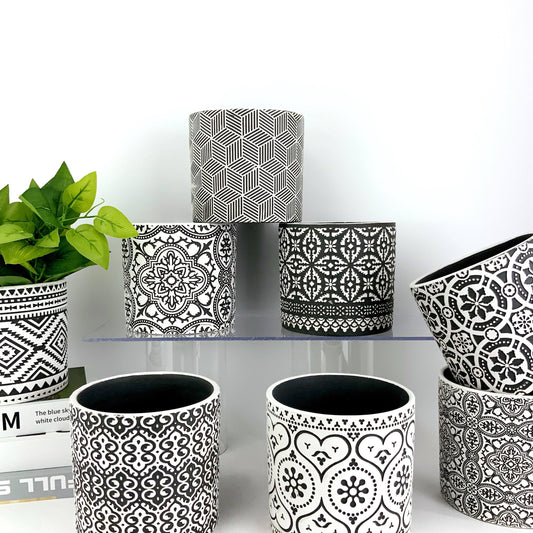 BLACK CIRCLE CERAMIC FLOWERPOT