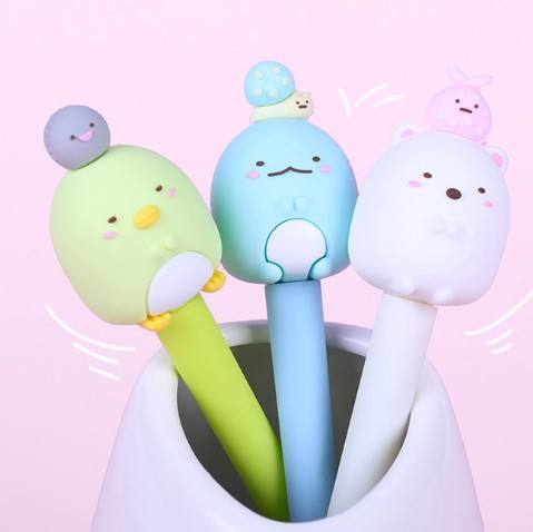 3D Cute Silicone Animal Sumikko Gurashi Gel Pen – 0.5mm black ink, fun and playful design featuring beloved Sumikko Gurashi characters, smooth writing experience, perfect for collectors, students, and fans of cute stationery.