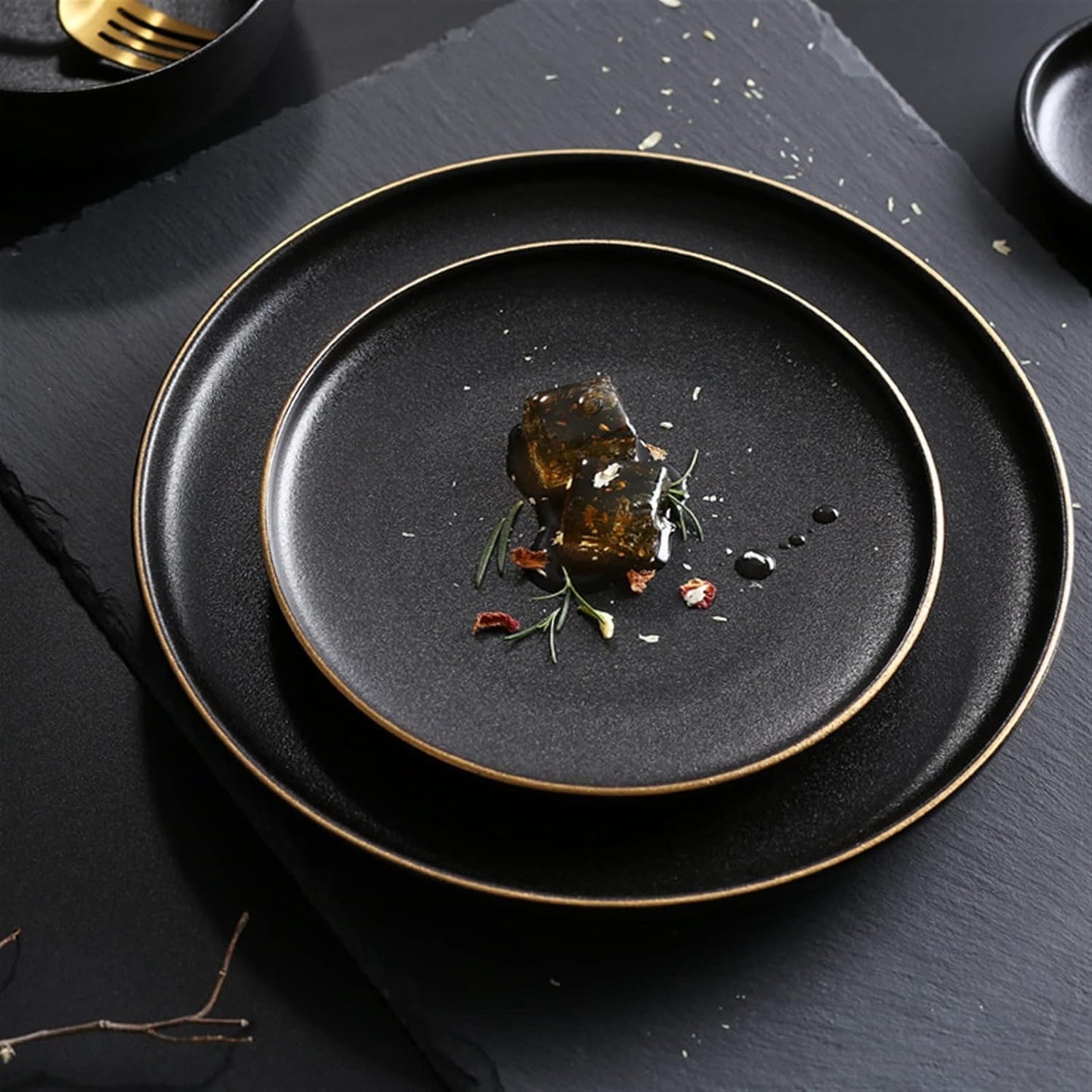6-Inch Frosted Black Plate with Gold Rim Elegant Ceramic Dinnerware for Home and Restaurant Modern Matte Finish Durable and Scratch-Resistant for Everyday Use and Special Occasions