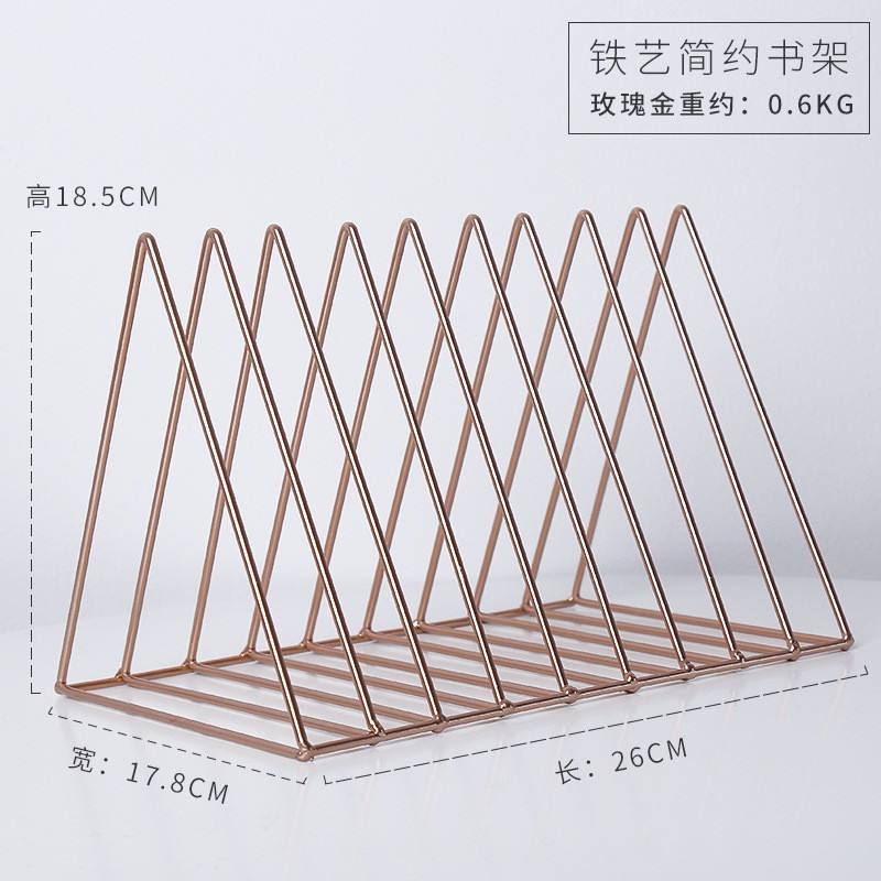 Nordic minimalist golden iron triangle newspaper rack bookshelf magazine rack living room study desktop storage decorations: