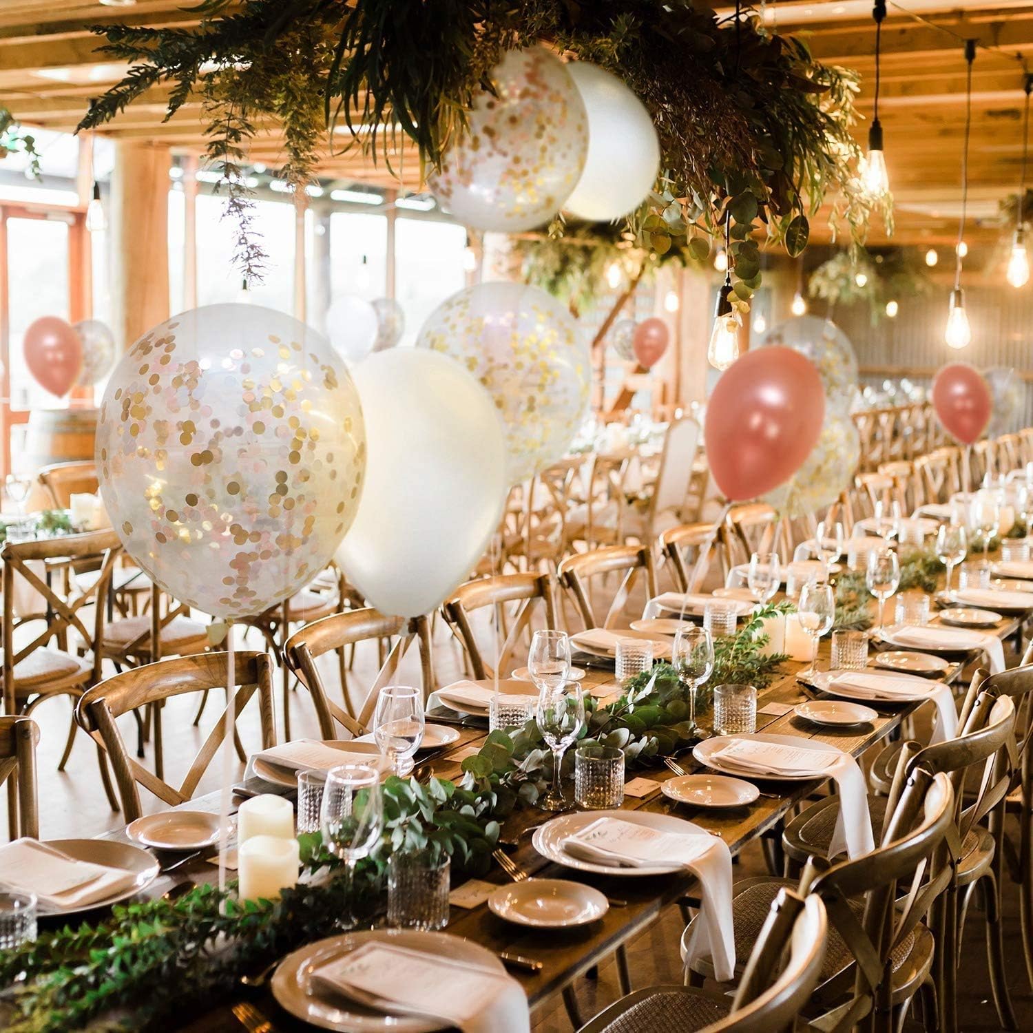 - Perfect for both indoor and outdoor use, these balloons complement various party themes and color schemes. Their stylish and glamorous look pairs well with other rose gold, white, or metallic decorations. Elevate your event with these elegant and high-quality confetti balloons that add a sparkling finishing touch.