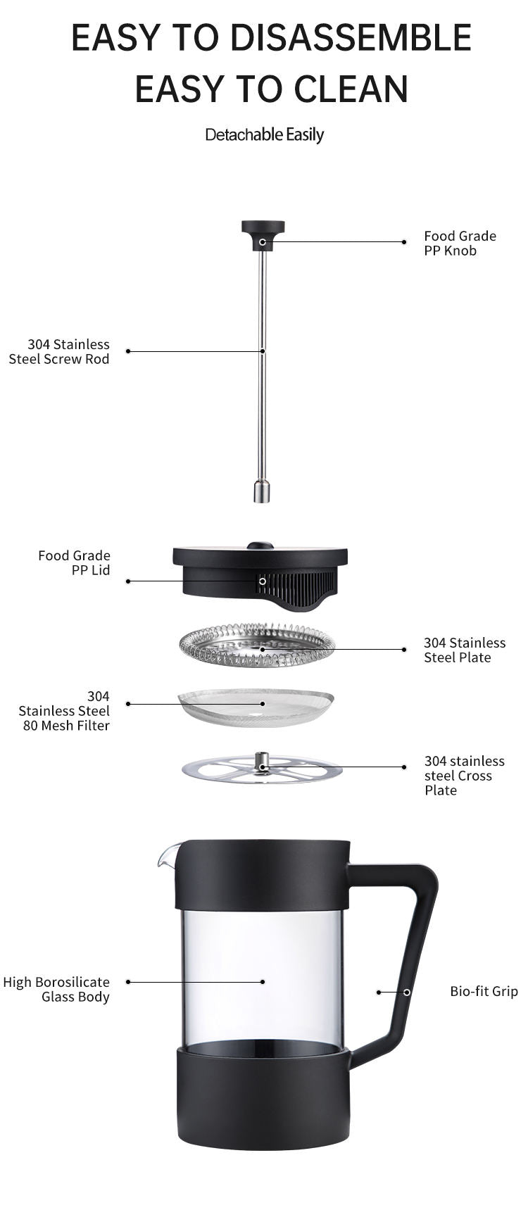 - Easy to Clean: The detachable components make cleaning a breeze. Simply disassemble the French press and wash the parts with warm soapy water or place them in the dishwasher for convenience.