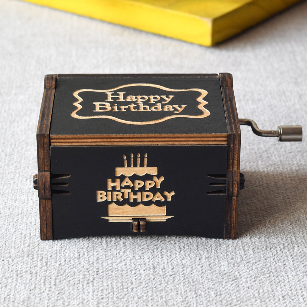 The vintage-inspired design features intricate carvings, adding a timeless and elegant touch to the music box. Simply wind it up to fill the room with the joyful sound of the "Happy Birthday" melody. This music box makes for a thoughtful and unique birthday gift, sure to be cherished for years to come.