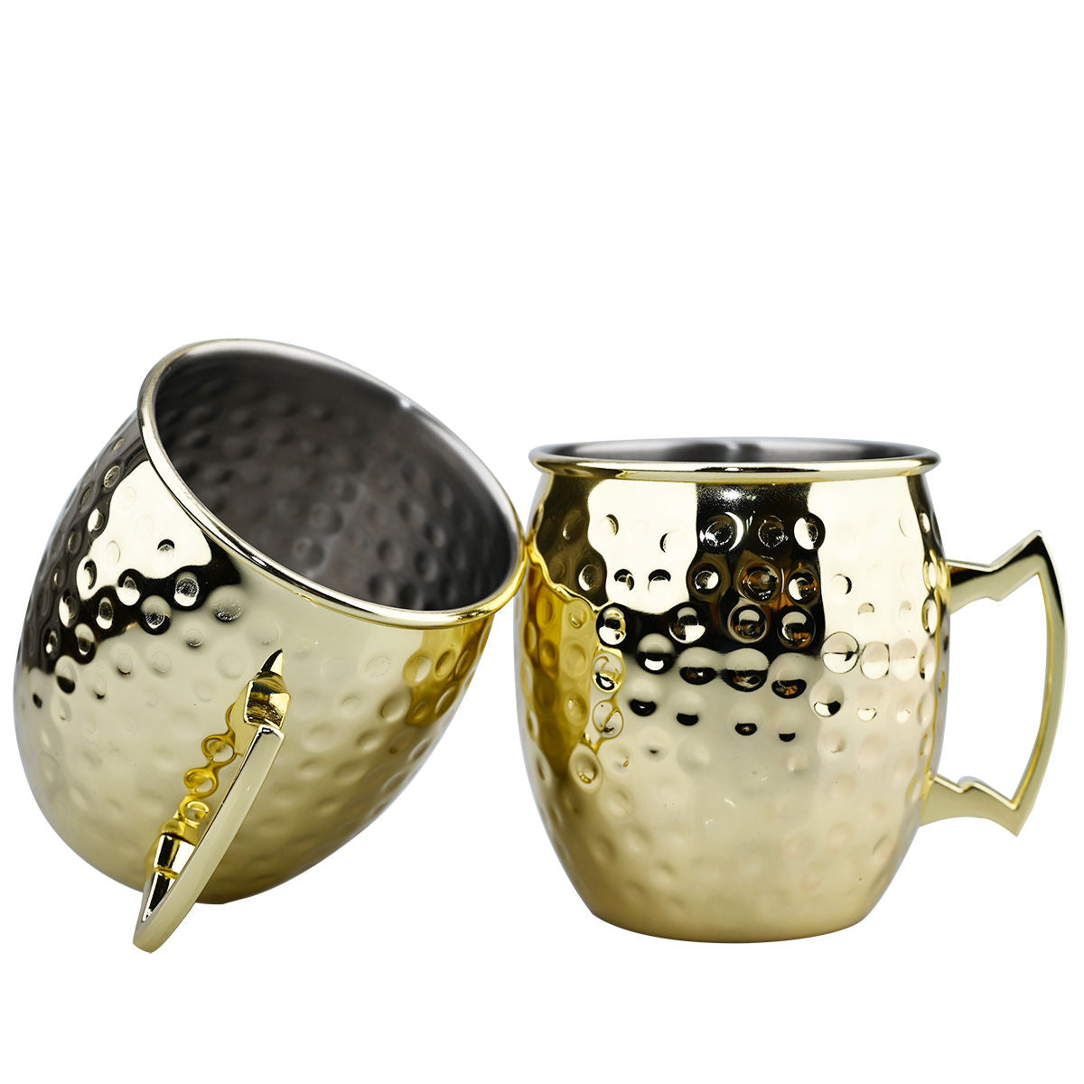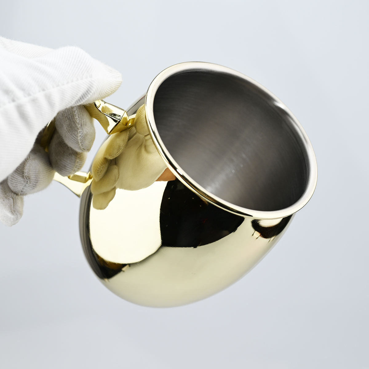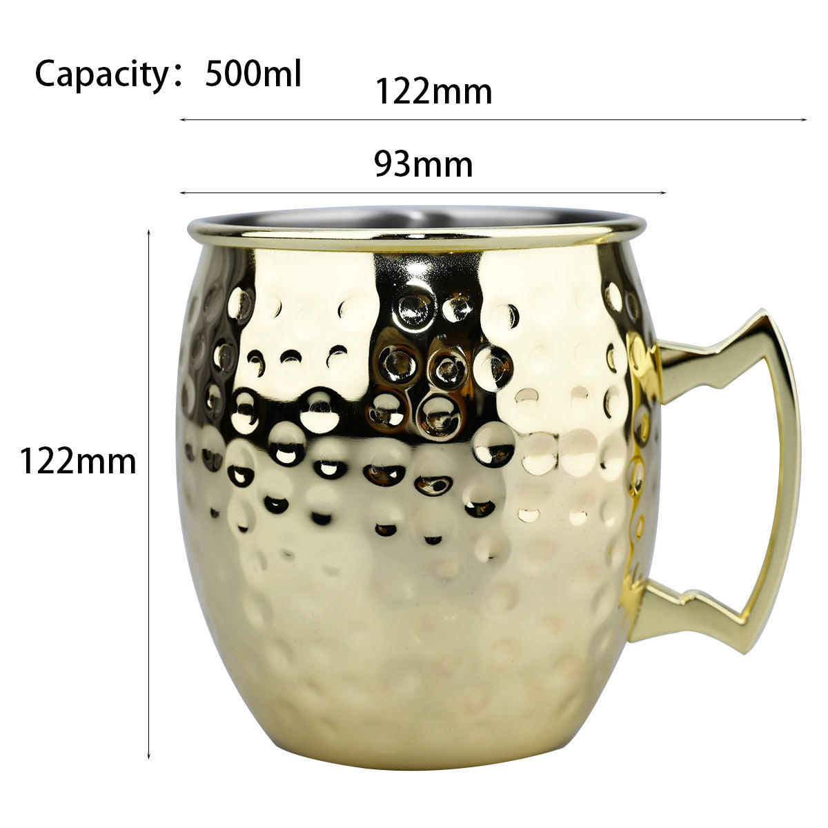 Indulge in the elegance of our Moscow Mule Barrel Copper-Plated Gold Cups. With a classic barrel shape and stunning gold plating, these generous 500ml cups are perfect for serving your favorite cocktails, including the iconic Moscow Mule. The radiant gold finish not only enhances the beauty of your beverages but also adds a touch of sophistication to any occasion, making every sip feel like a celebration.