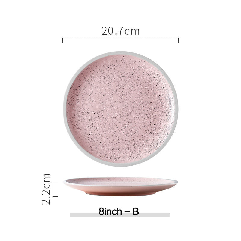 - Add a pop of color to your dining table with this 8-inch Pink Plate featuring striking black spots. The soft pink hue combined with bold black accents creates a playful yet sophisticated look, making it perfect for serving desserts, appetizers, or small meals. This plate is a versatile addition to any table setting, whether for everyday use or special occasions