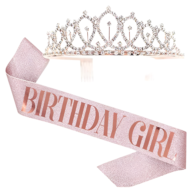 - Make the birthday girl feel like a queen with this Crown and Sash Set, designed to add a glamorous touch to any birthday celebration. Featuring a sparkling crown and a stylish satin sash, this set enhances any outfit, making it perfect for milestone birthdays, sweet sixteens, quinceañeras, and more. Whether celebrating at home, a restaurant, or a party venue, this accessory set ensures the birthday girl stands out in style.