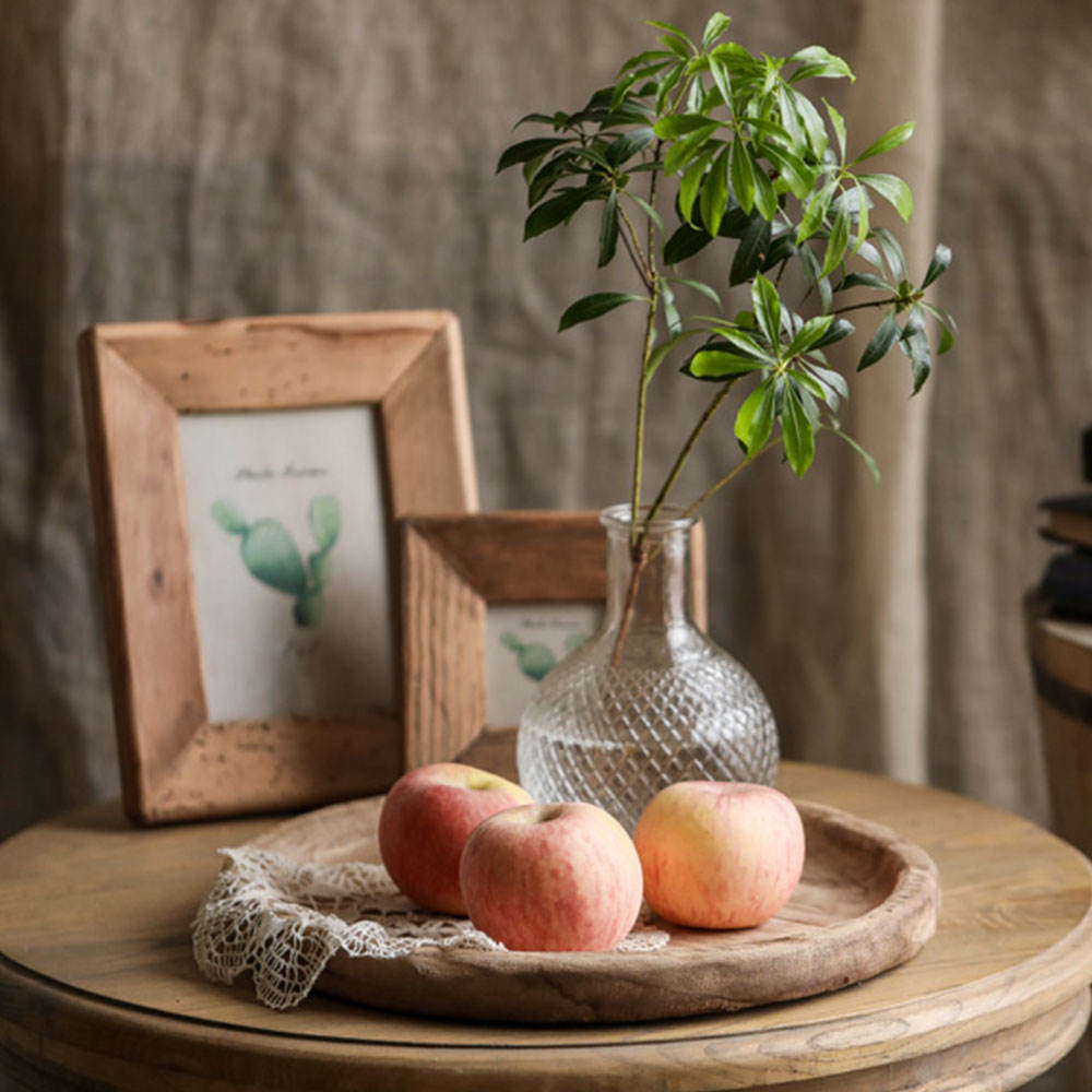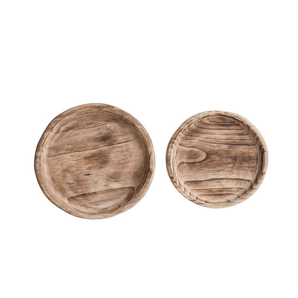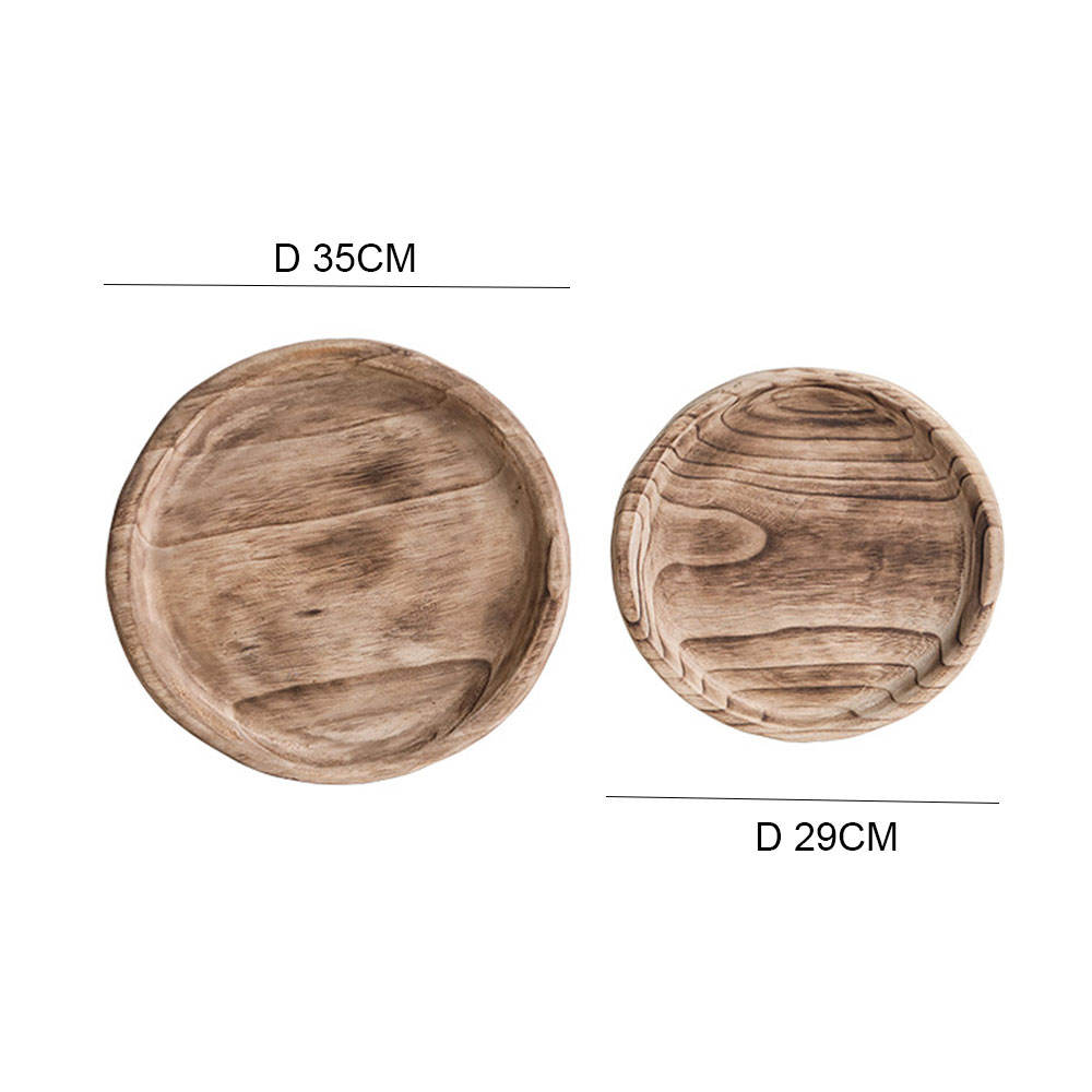 Paulownia round tray household ornaments living room retro tea tray fruit tray