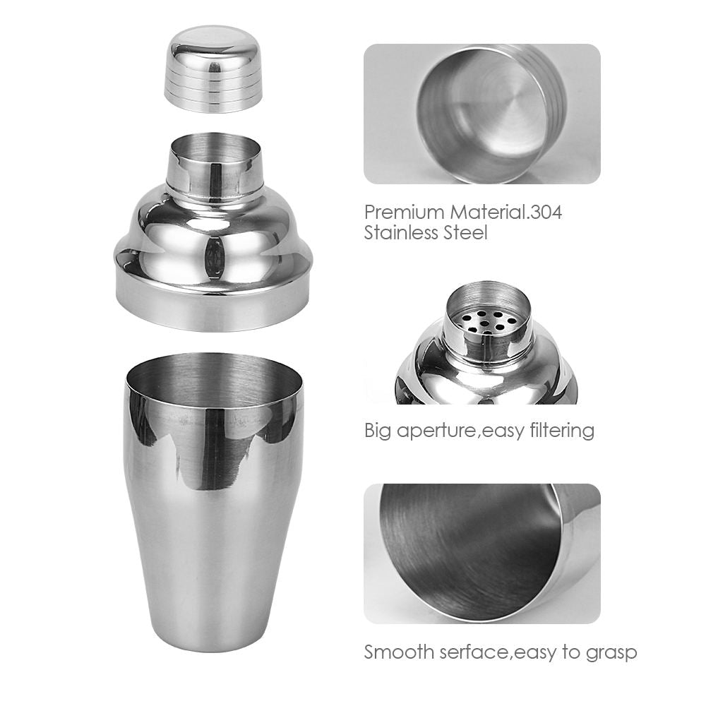 Elevate your mixology skills with our sleek 5-Piece Cocktail Shaker Bartender Kit in a stunning silver finish. This all-in-one set includes a professional-grade cocktail shaker, a strainer, a jigger, a stirring spoon, and a bottle opener, providing everything you need to craft delicious cocktails at home. Made from high-quality stainless steel, this kit is not only durable but also easy to clean and maintain. Whether you're a beginner or an experienced bartender, this stylish kit will impress your guests and enhance your cocktail-making experience. Perfect for parties, home bars, or as a thoughtful gift for cocktail enthusiasts.