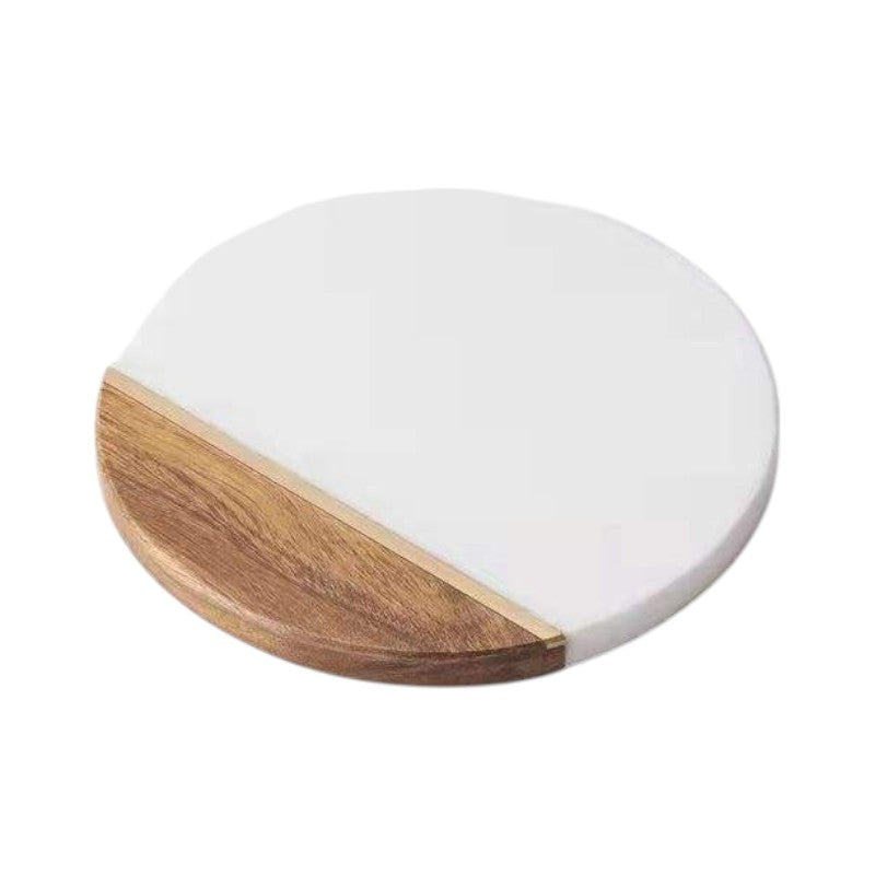 This Hot Selling Round Marble Display Tray is crafted with natural solid wood and comes with a marble splicing board, perfect for serving bread and cheese. Its round shape makes it more durable than square trays, and it's hot-selling status makes it a great choice for any occasion.