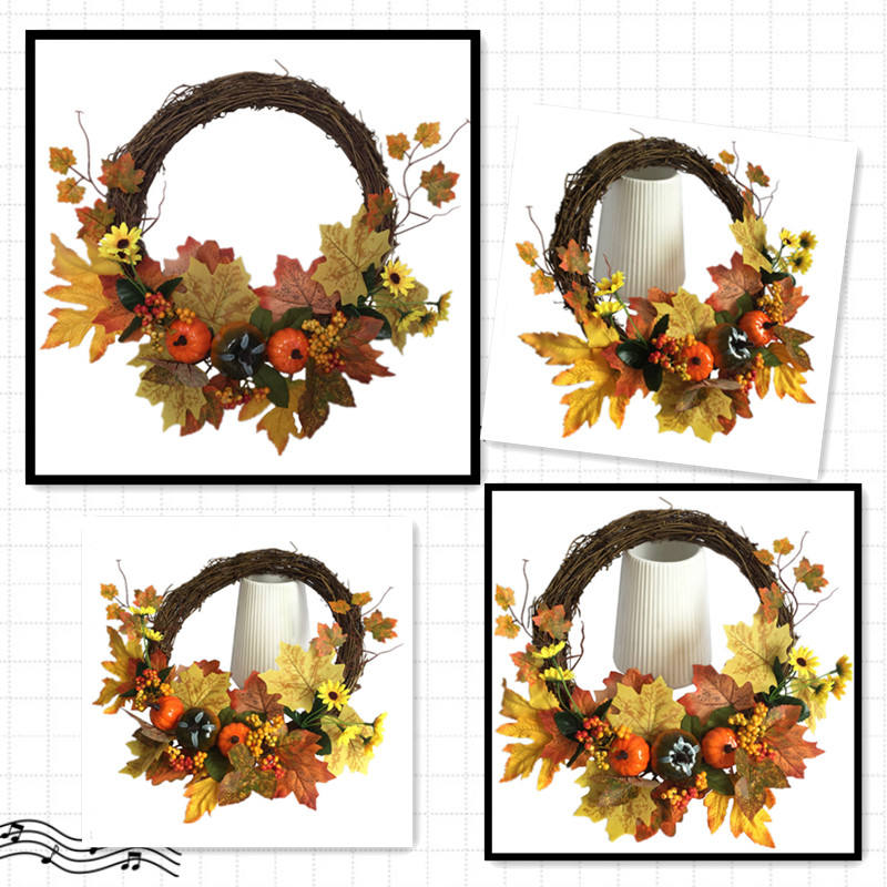 Crafted from high-quality artificial materials, this wreath features an array of lifelike leaves in stunning fall hues, creating a visually striking display that lasts throughout the season. Its versatile design makes it perfect for hanging on your front door, adorning an entryway, or as a centerpiece for festive gatherings.
