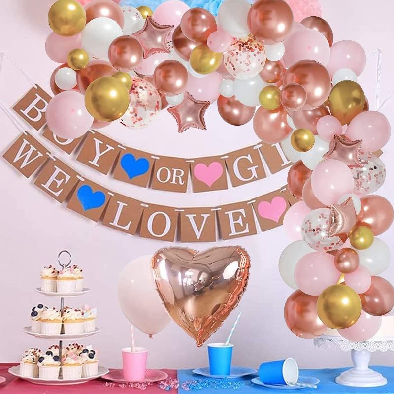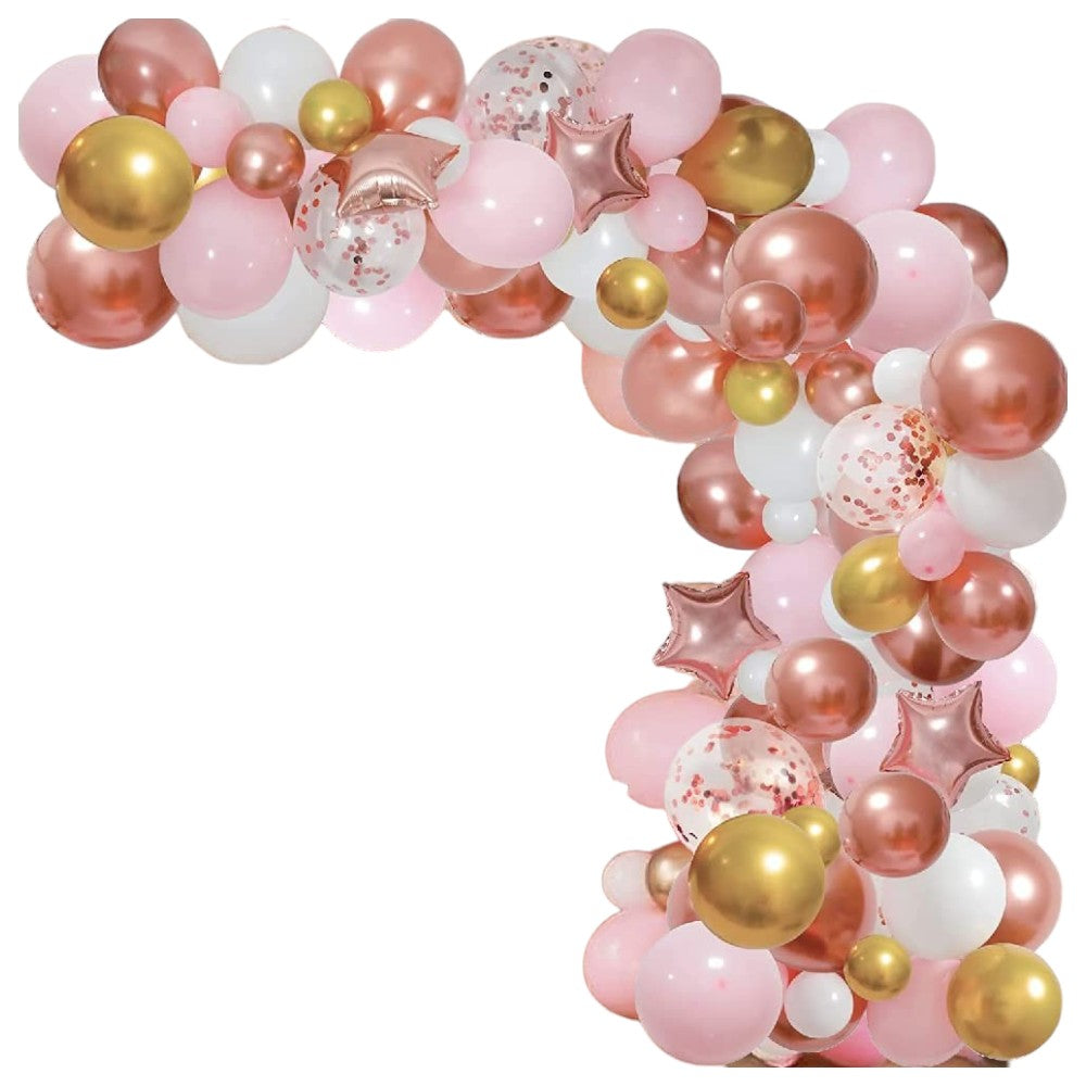 - Transform any celebration with this elegant Rose Gold Balloon Garland Arch Kit, featuring a stunning combination of pink, gold, white, and rose gold balloons. This 120-piece set includes metallic, matte, and confetti balloons, creating a luxurious and eye-catching display. Perfect for birthdays, weddings, baby showers, and other festive events, this kit provides everything you need to craft a beautiful balloon arch or garland effortlessly.