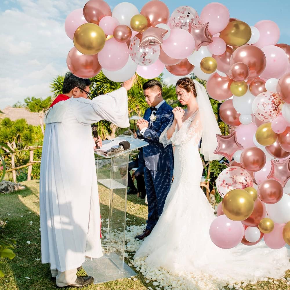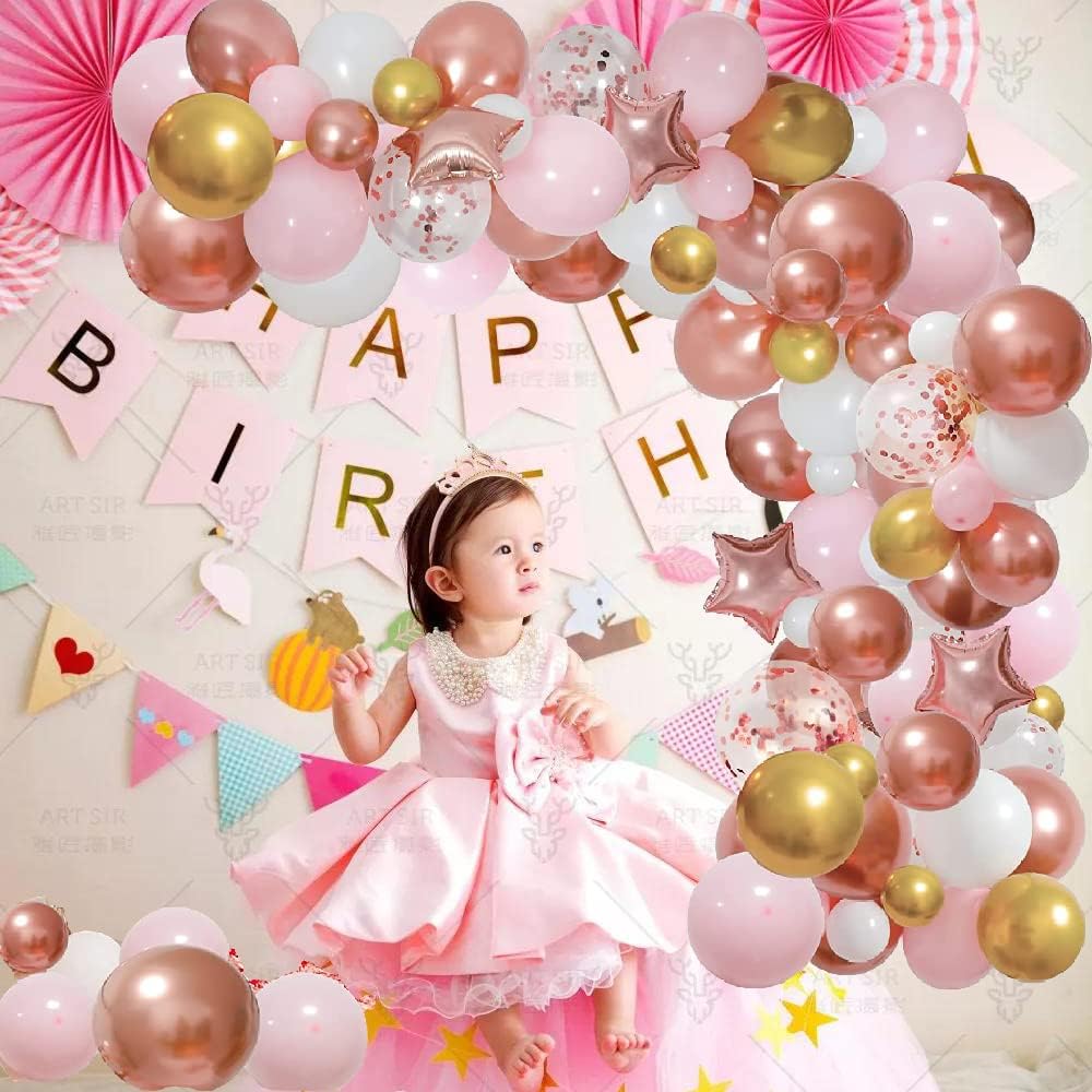 Rose Gold Balloon Garland Arch Kit with Pink, Gold & White Balloons, 120-Piece Set, Includes Metallic & Confetti Balloons, DIY Party Decoration for Birthday, Wedding, Baby Shower & Events